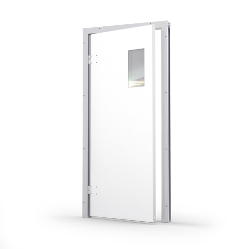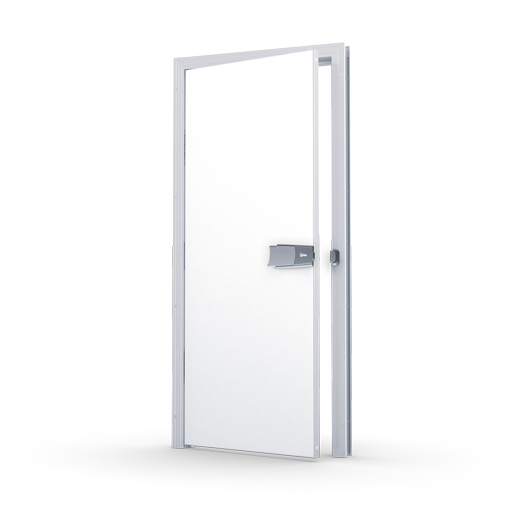 Dörrar i stålplåt och glasfiberarmerad polyester speciellt anpassade för kylrum.